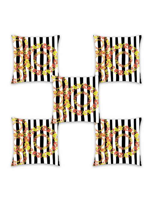 Ambbi Collection Digitally Printed Cushion Cover stripes background & circle with the flowers set of 5
