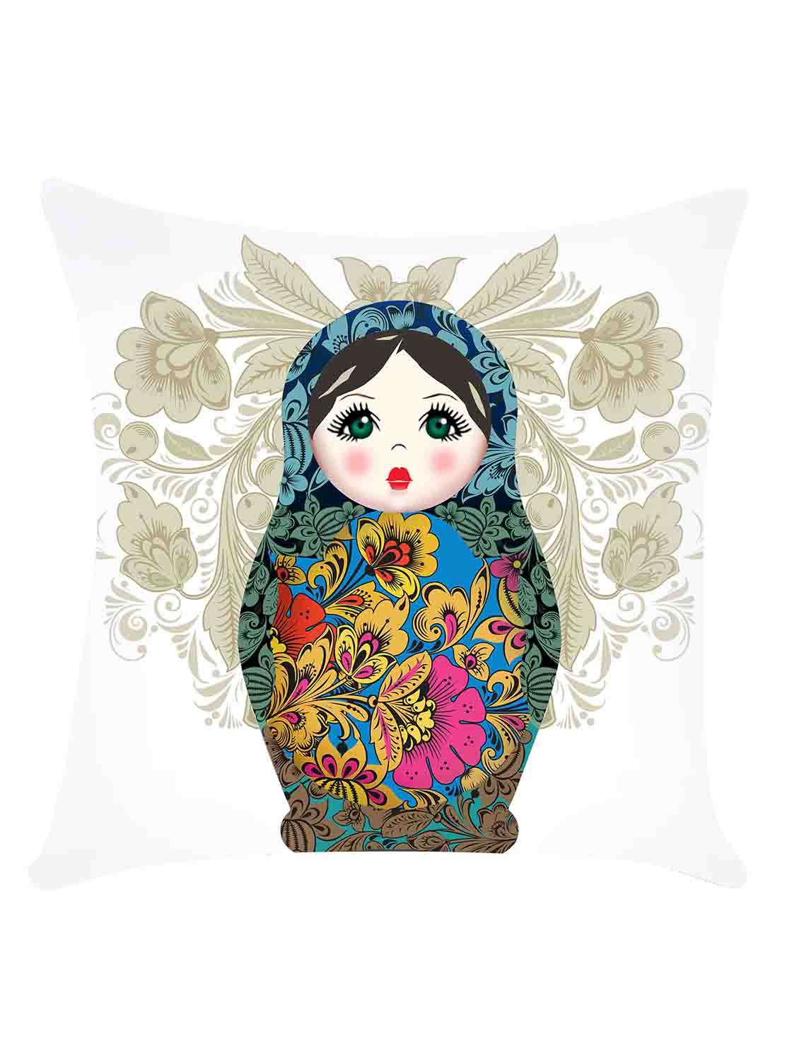 Ambbi Collection Digitally Printed Cushion Cover Blue Russian Doll