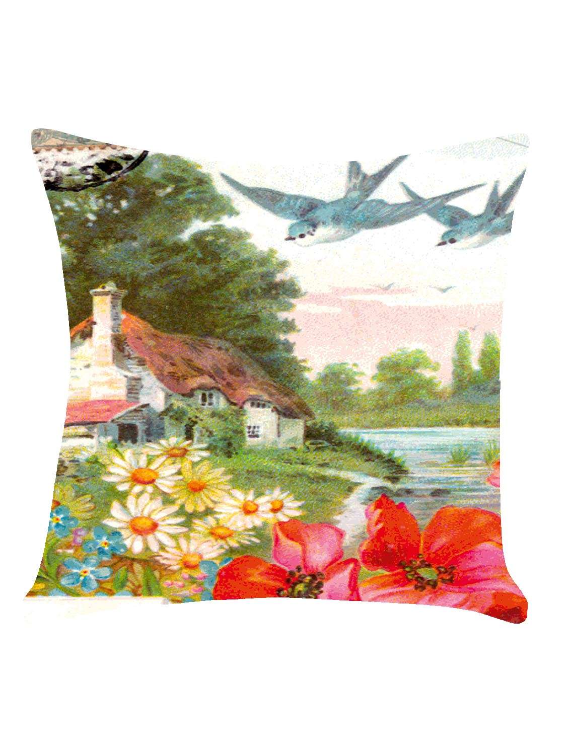 - » ambbi collection digitally printed cushion cover scenery view- house bird flowers