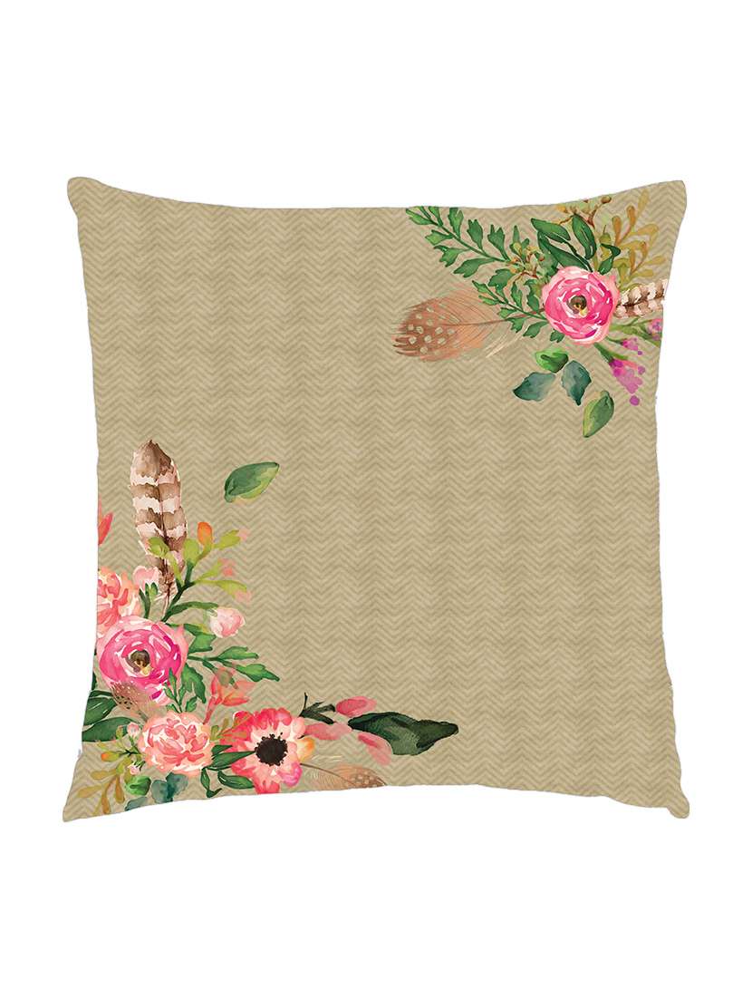 - » digitally printed cushion cover of flowers and leaves on brown texture