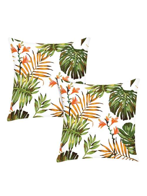 Digitally printed Cushion Cover with geometric and leaf design set of two