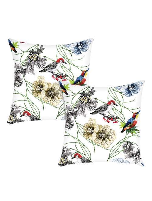 Digitally printed Cushion Cover with birds and leaf design set of two