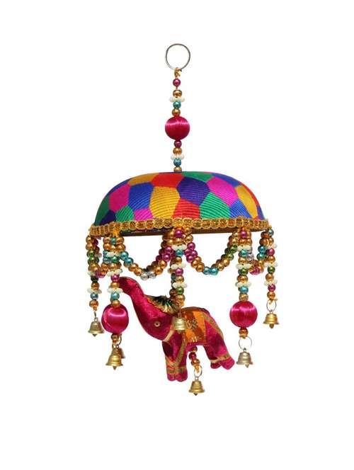 - » door hanging pink velvet cloth elephant with multicolor tokri decorative beads and metal bell