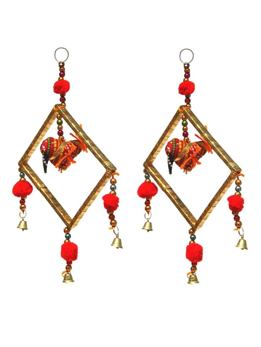 - » pair of door hanging red chunari cloth bird inside square shaped border with bells