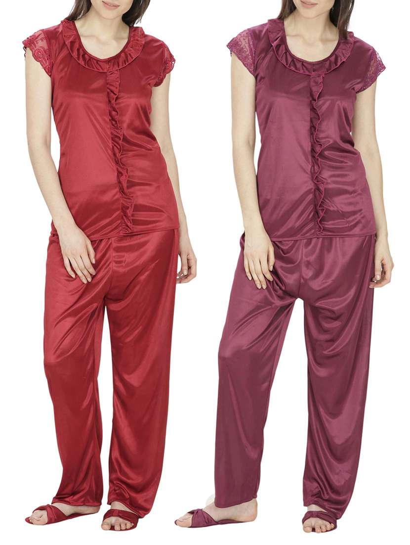 multi colored satin nightwear set combo