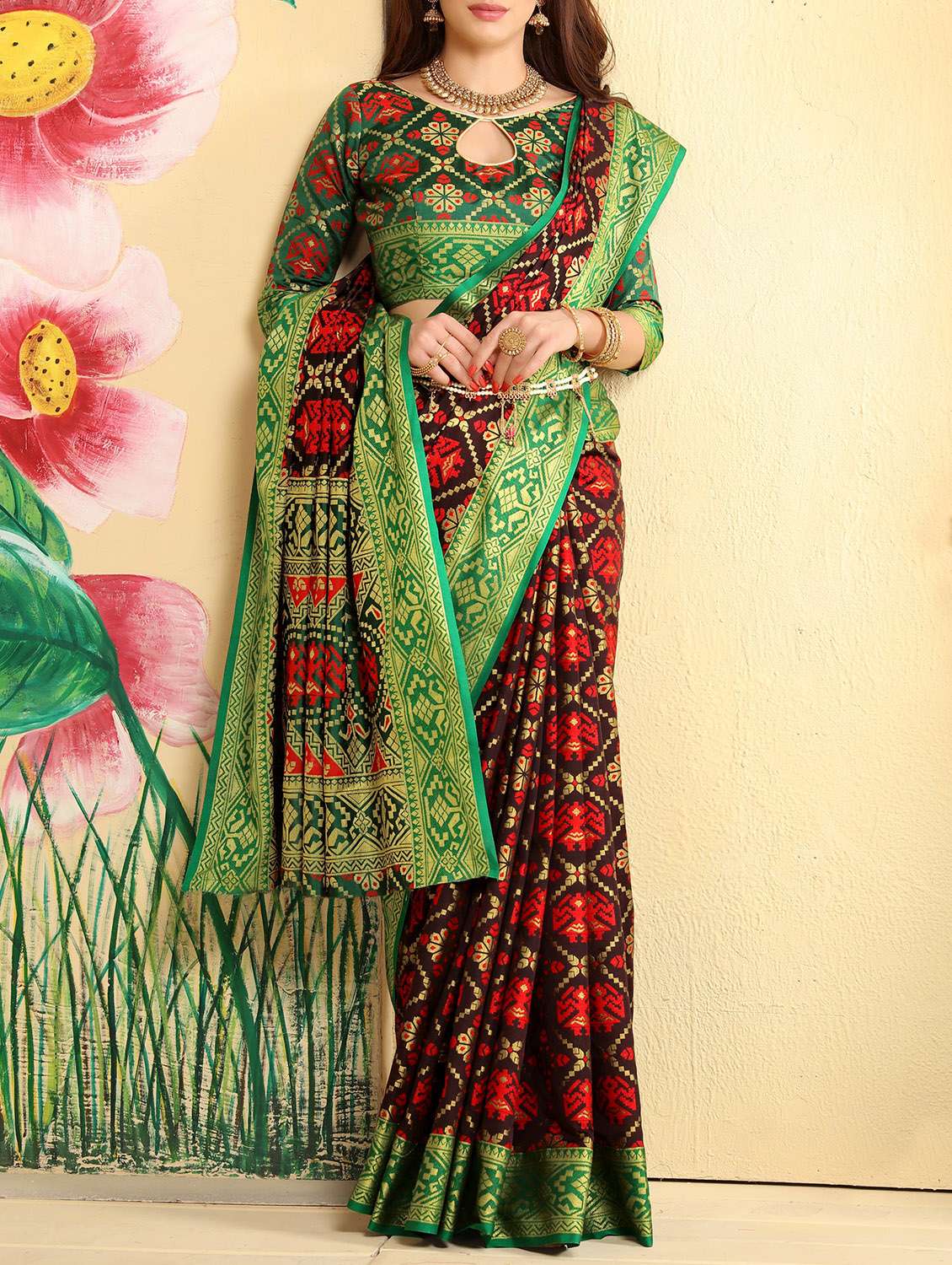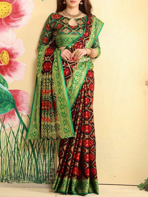 brown patola silk saree with blouse - 15227210 -  Standard Image - 1 brown patola silk saree with blouse - 15227210 -  Zoom Image - 1