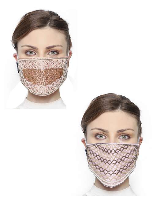- » pack of 2 multicolor 3-ply art silk embellished fabric fashion mask