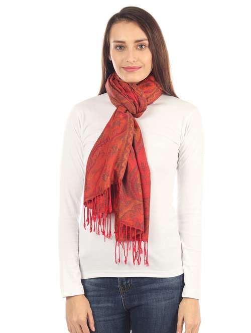 - Own a handwoven piece and round off your winter look with cozy stoles in red colours.
