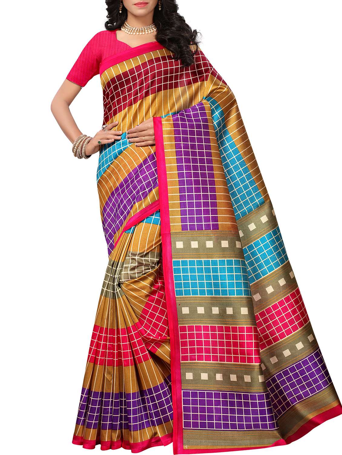 checkered mysore silk saree with blouse - 15976236 - Very Small Image - 1