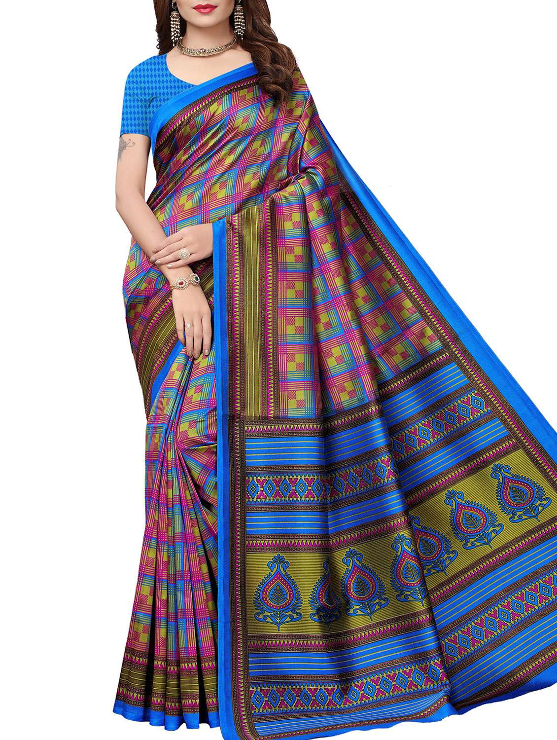 - » checkered mysore silk saree with blouse