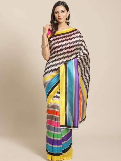 - » women's stripes multi colored saree with blouse