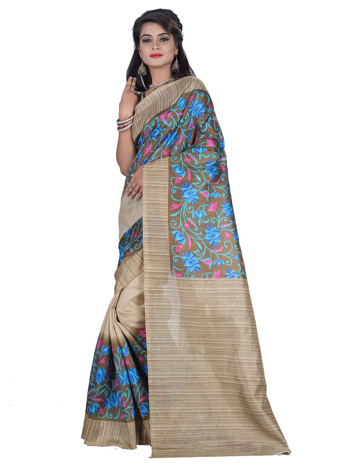 - » women's floral brown colored saree with blouse