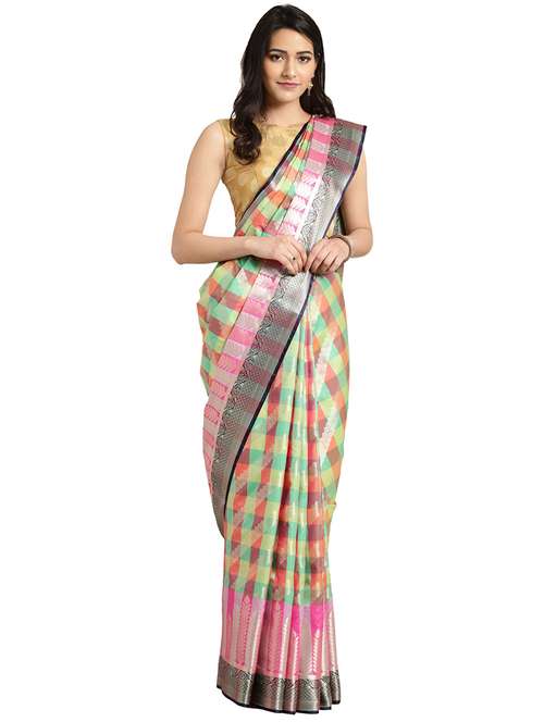- » checkered kanjivaram saree with blouse