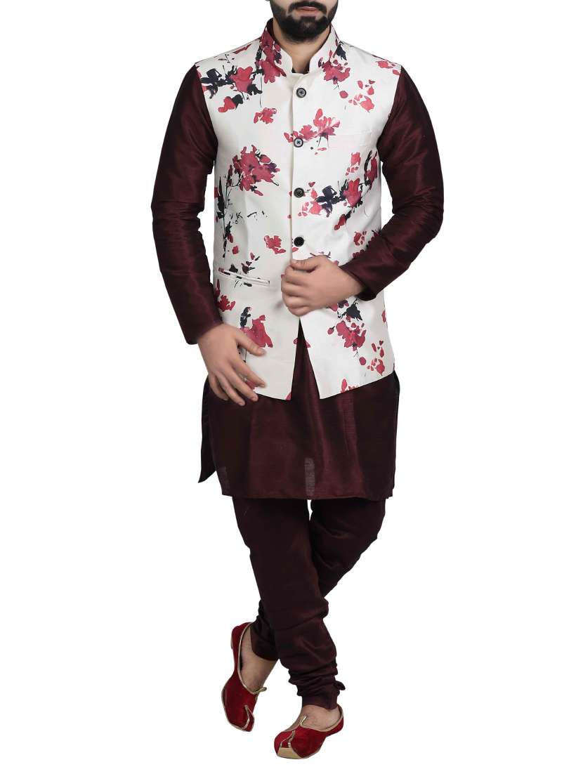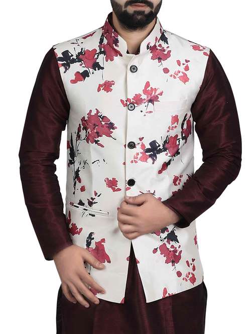 - » white silk blend nehru jacket