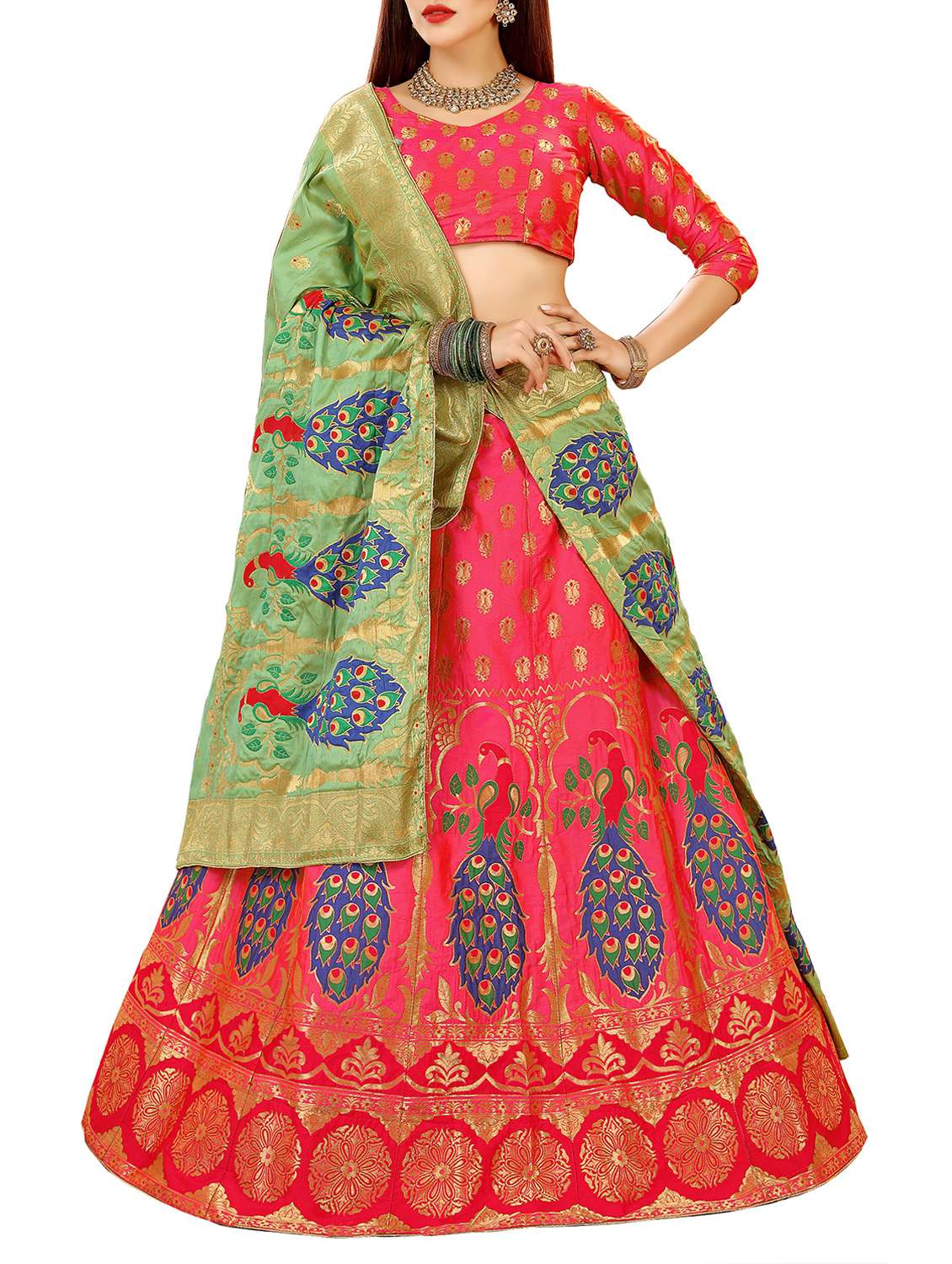 pink silk flared lehenga - 15218010 - Very Small Image - 1