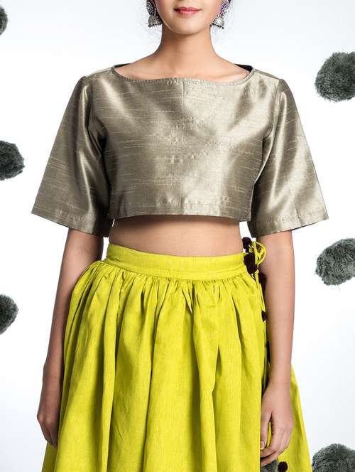- » antique silver silk cotton blend crop top