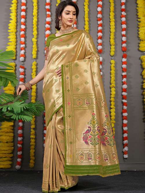 women's self design gold colored saree with blouse - 20277664 - Very Small Image - 1
