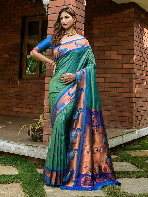 women's self design green colored saree with blouse - 20290720 - Very Small Image - 1