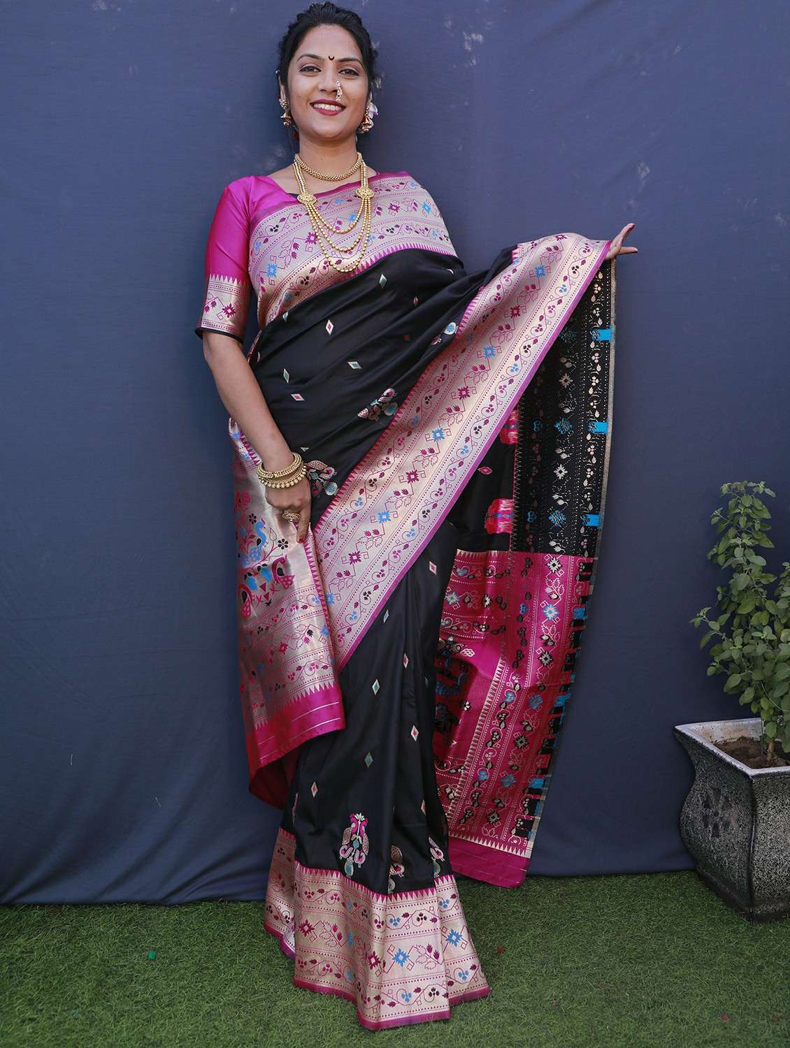 women's self design black colored saree with blouse - 20290748 - Very Small Image - 1