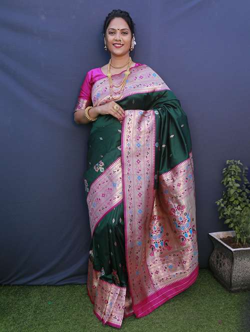 women's self design green colored saree with blouse - 20290752 - Very Small Image - 1