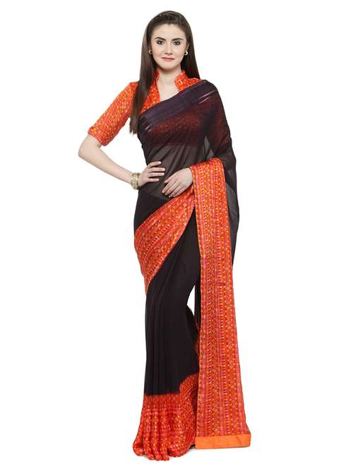 - » black silk printed saree with blouse