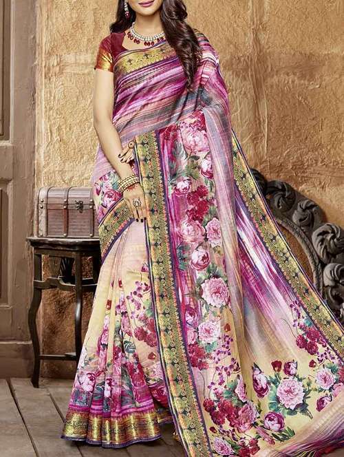 pink printed saree with blouse - 14247645 - Very Small Image - 1