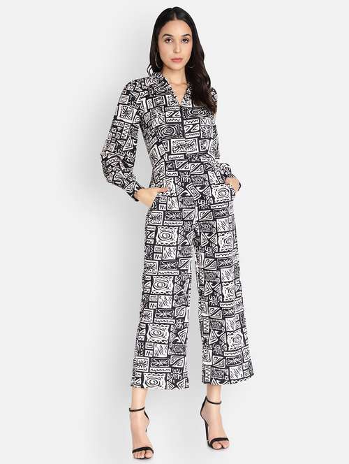 - » shirt collar printed full leg jumpsuit