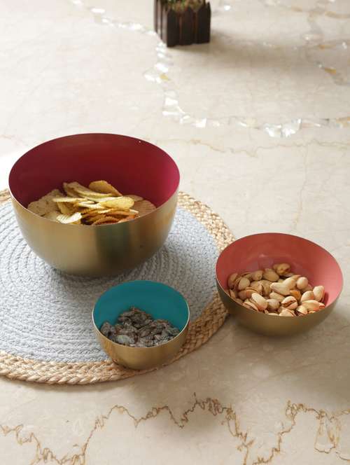 multicolor matt gold with red rust, peach and blue color paint - set of 3