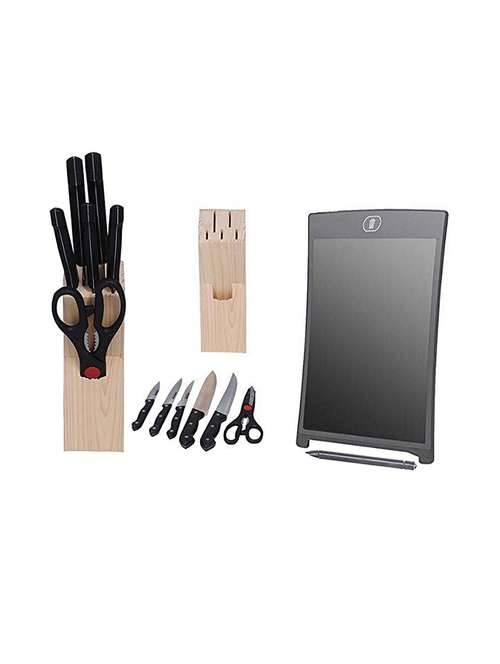 clearex kitchen 7-piece pcs best kitchen knife set with wooden block stand with graphic learning kids writing tablet