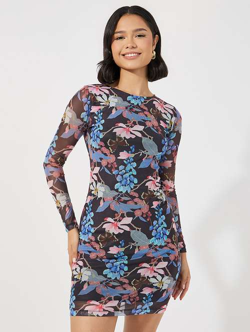 - » women printed long sleeves bodycon dress