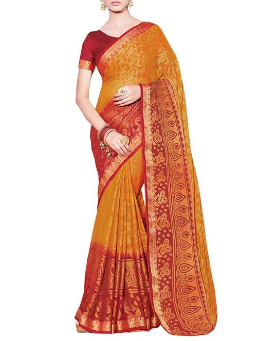 contrast bordered printed saree with blouse - 15401943 - Very Small Image - 1