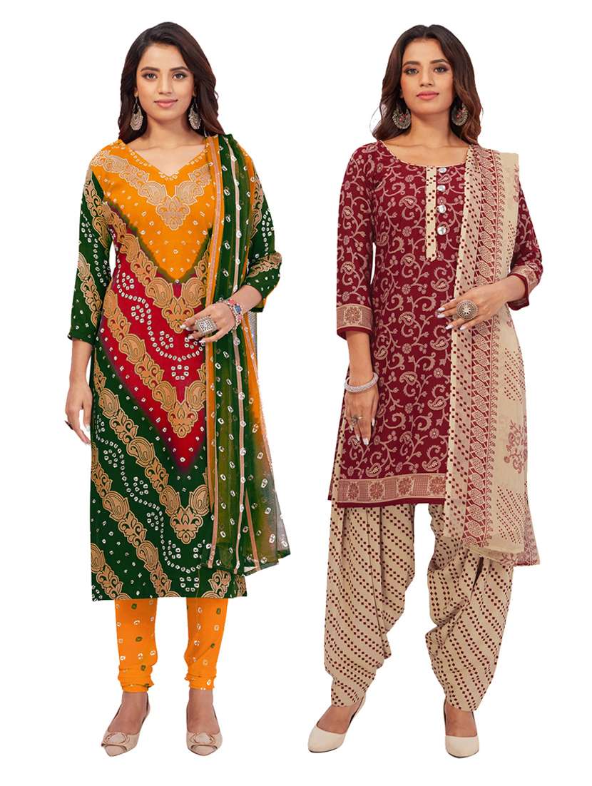 pack of 2 printed unstitched suit set