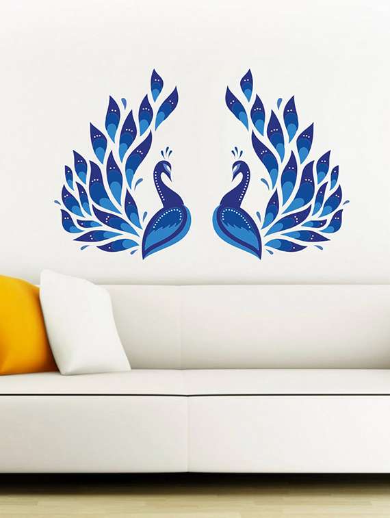 Decor Villa Blue Peacock Wall Sticker & Decal (PVC Vinyl,Size -91 cm x 58 cm)