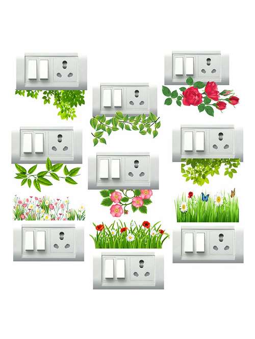 Decor Villa Greenary Grass Switch Board Sticker (PVC Vinyl, Size- 33 Cm X 25 Cm)