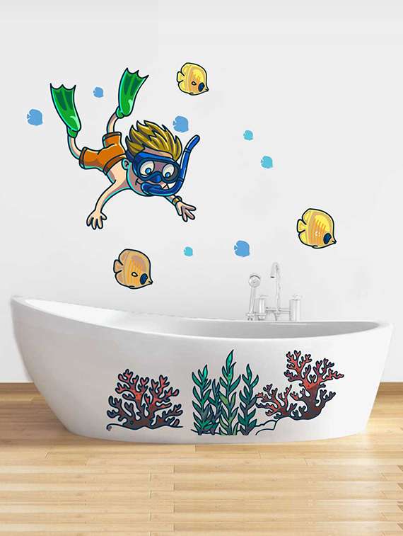 rawpockets wall decals ' underwater life wall sticker ' wall stickers (pvc vinyl) multicolour