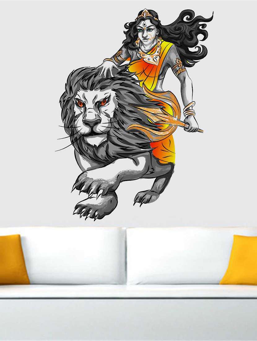 rawpockets wall decals ' durga with lion wall decal sticker ' wall stickers (pvc vinyl) multicolour