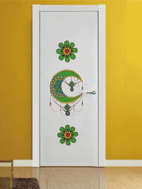 - » rawpockets wall decals ' decorative flower and half moon wall decal sticker ' wall stickers (pvc vinyl) multicolour