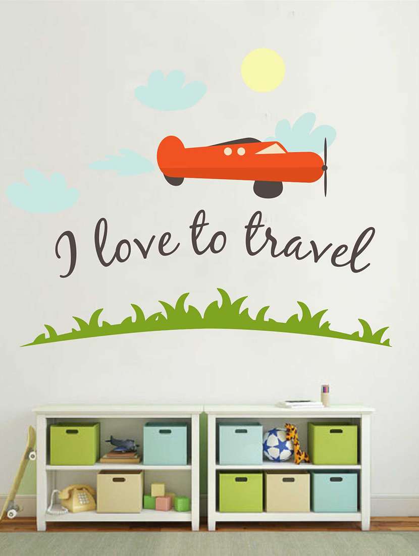 rawpockets wall decals ' i love to travel ' wall decal sticker ' wall stickers (pvc vinyl) multicolour
