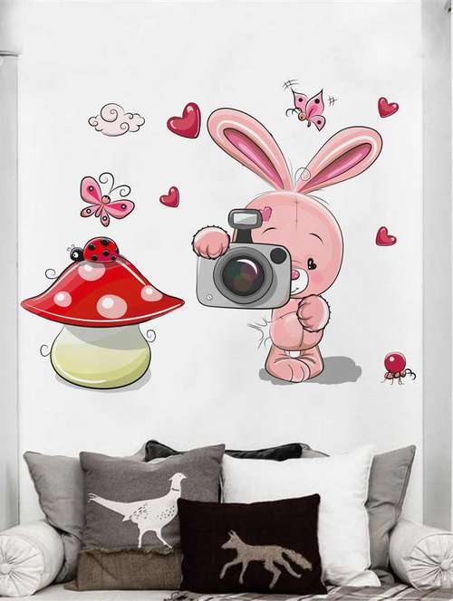 - » rawpockets wall decals ' rabbit and camera' wall decal sticker ' wall stickers (pvc vinyl) multicolour