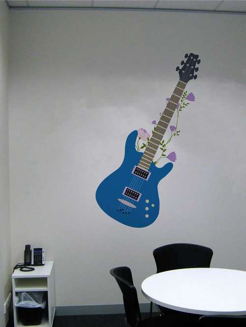 rawpockets wall decals ' blue stylish guitar' wall decal sticker ' wall stickers (pvc vinyl) multicolour