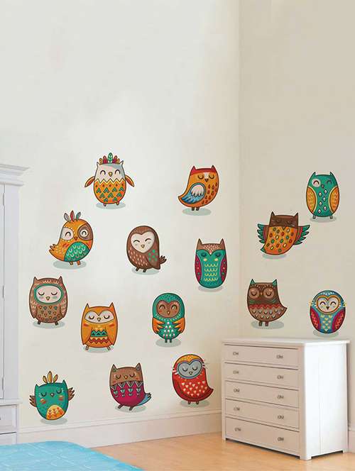 - » rawpockets wall decals ' decorative owl birds' wall decal sticker ' wall stickers (pvc vinyl) multicolour
