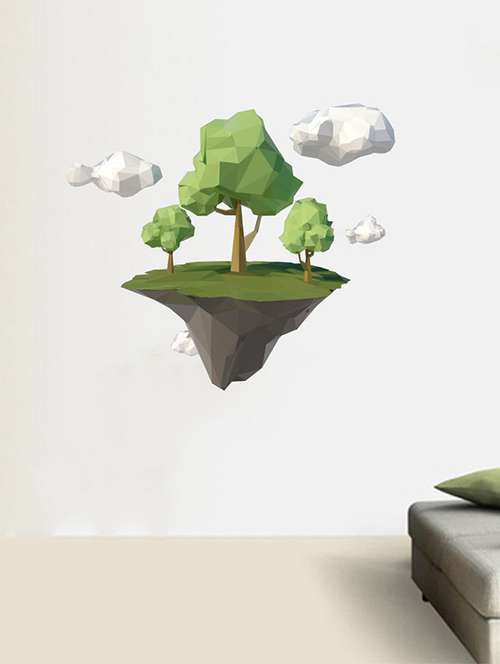 - » rawpockets wall decals ' green trees and clouds wall sticker ' wall stickers (pvc vinyl) multicolour