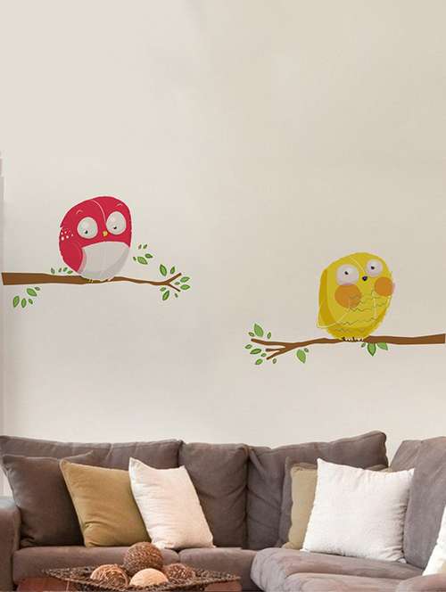 - » rawpockets wall decals ' yellow and red owl wall sticker ' wall stickers (pvc vinyl) multicolour