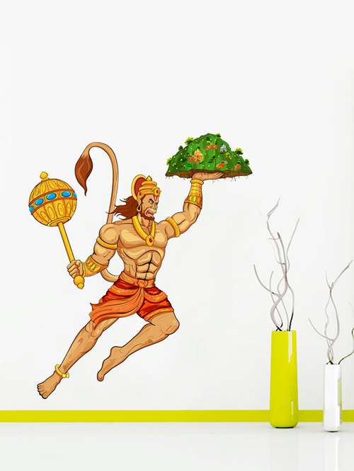 rawpockets wall decals ' lord hanuman carrying sanjeevani hills wall sticker '  wall stickers (pvc vinyl) multicolour - 15733694 - Very Small Image - 1