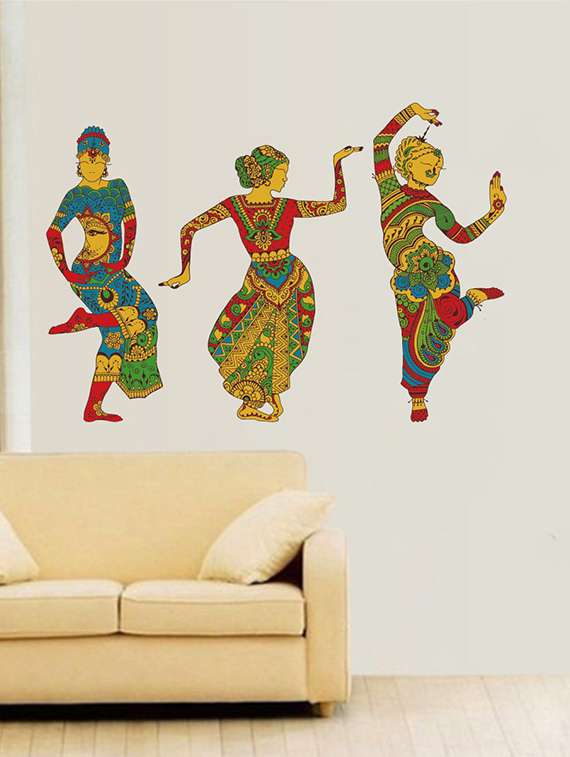 rawpockets wall decals ' indian ethnic dance combo decorative wall sticker ' wall stickers (pvc vinyl) multicolour