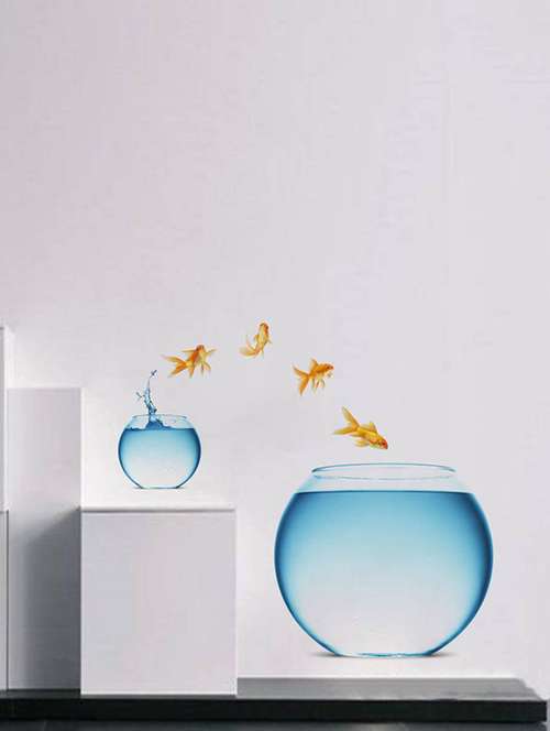 rawpockets wall decals ' bed room fish pot ' wall stickers (pvc vinyl) multicolour