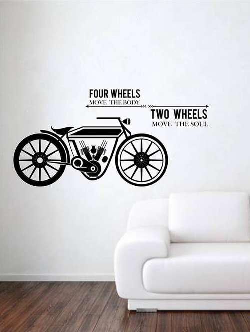 rawpockets wall decals ' four wheels two wheels ' wall stickers (pvc vinyl) multicolour