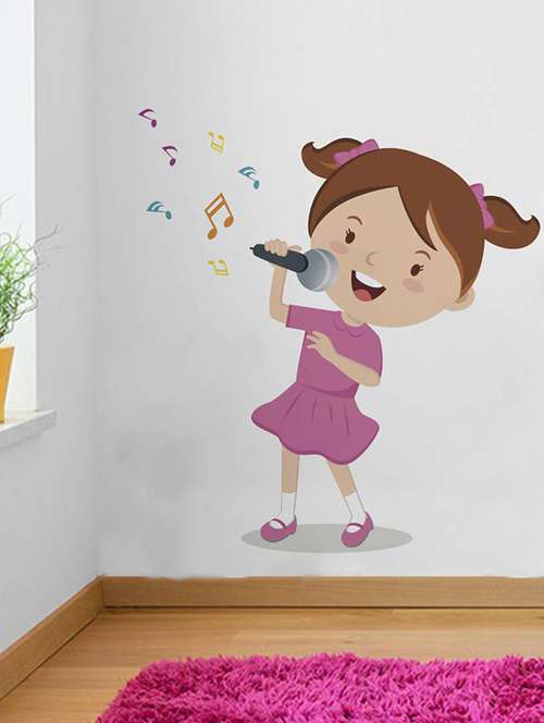 rawpockets wall decals ' girl singing songs ' wall stickers (pvc vinyl) multicolour
