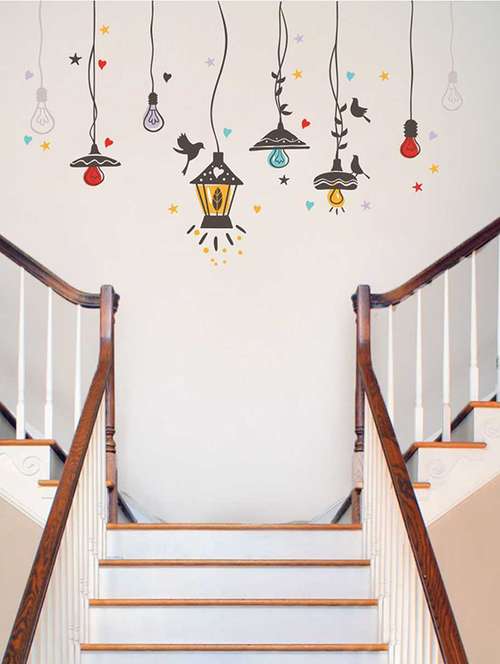 rawpockets wall decals ' birds nest and lights sparkling ' wall stickers (pvc vinyl) multicolour