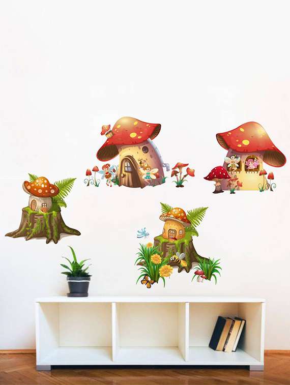 rawpockets wall decals ' mushroom story - kid's room ' wall stickers (pvc vinyl) multicolour